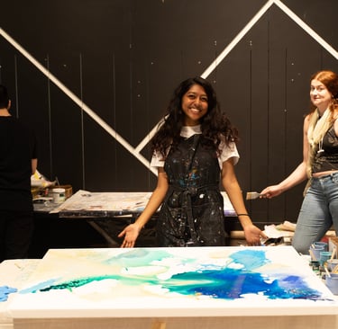 Homage to the Ocean by Anuradha X (Noon-2 PM) A contemplative exploration of fluid painting inspired by the shifting tones and forces of the sea. Guided pouring technique. Open to ages (12+).